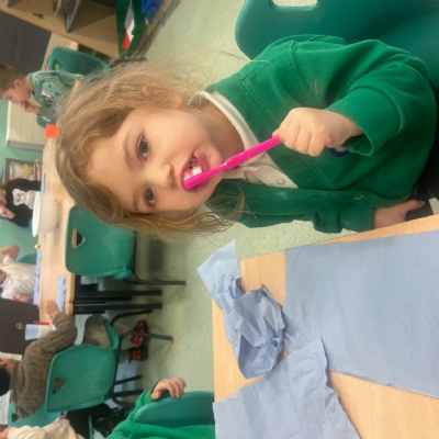 At nursery, students have been discovering the significance of toothbrushing as a key part of their daily routine. They are learning about the reasons behind brushing their teeth and how it contributes to maintaining their cleanliness and health. To add an element of fun, the children listen to a toothbrushing song, which encourages them to brush for the appropriate duration. The children are truly enjoying this activity and are gaining confidence as they practice this essential skill.