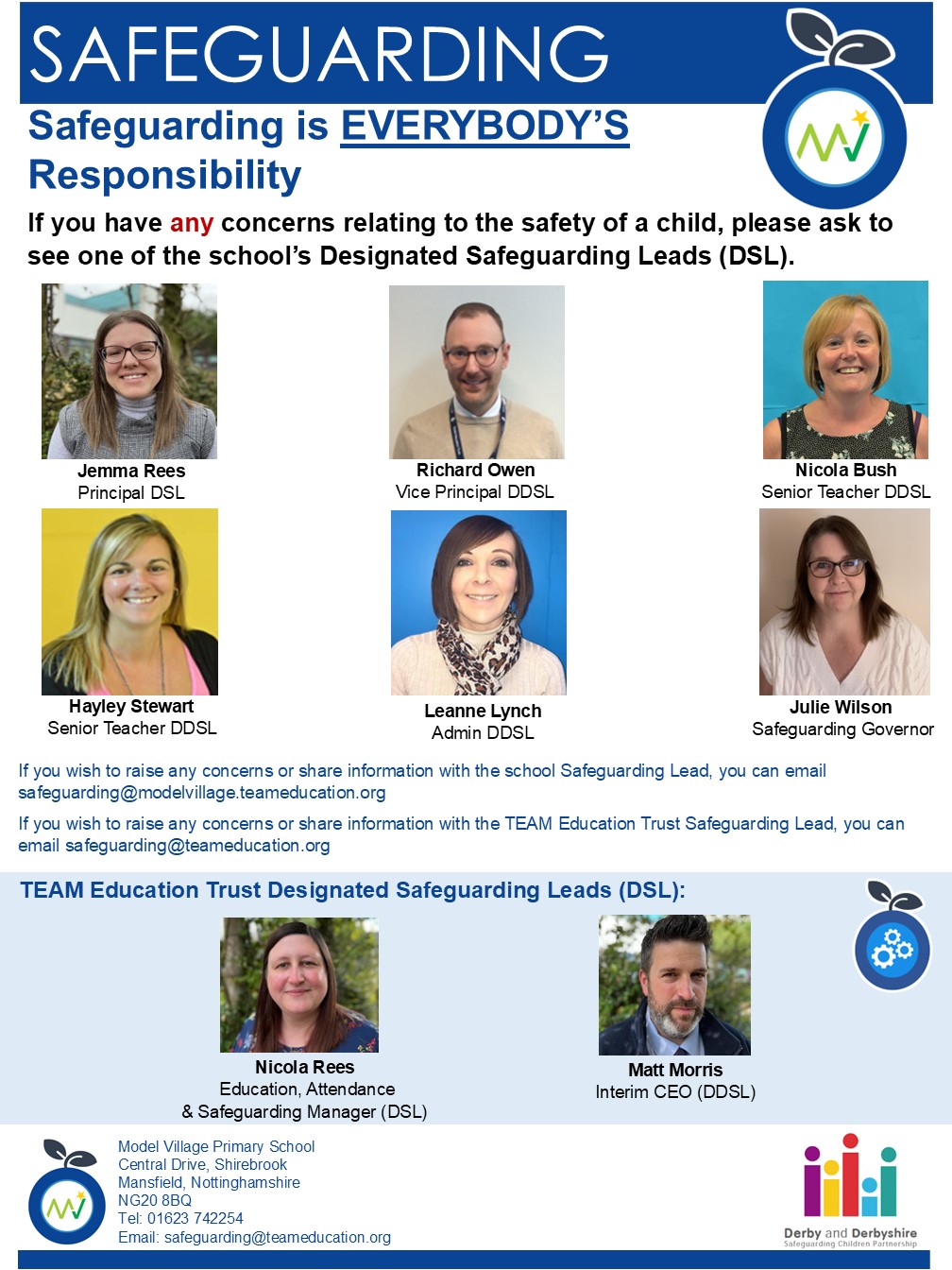 • If you wish to raise any concerns or share information with the School Safeguarding Lead, you can email on safeguarding@modelvillage.teameducation.org